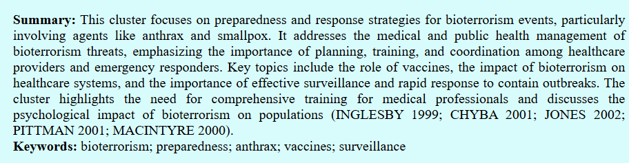 Cluster labeling and summarization with gpt-4o. Summaries include specific citations of citing articles associated with prominent themes in each cluster.