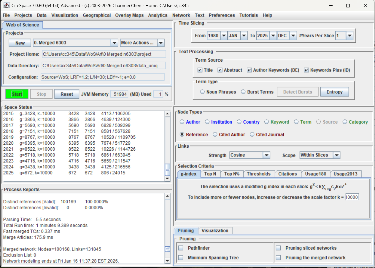 The new version optimized the overall performance. In particular, it allows you to handle much larger networks than previous versions. In the following example, nodes are selected by g-index with a k of 10,000. The network in this example consists of 100,168 nodes and 131,845 links. It took 1 minute 9 seconds to complete the construction.