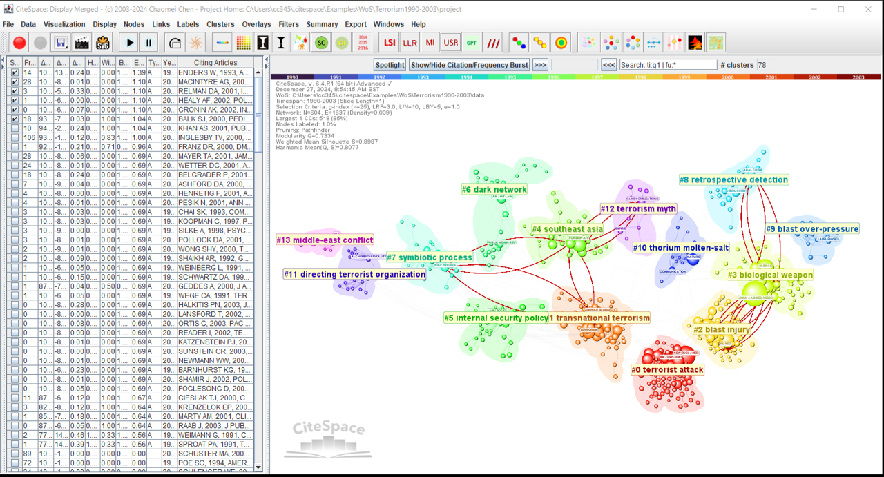 In CiteSpace, if an author cited publications from different continents, the author is in effect establishing a new connection if no one else has done that so far or the author is strengthening an existing one. If this particular connection gets stronger and stronger, one day it could become strong enough to alter the structure of the system.